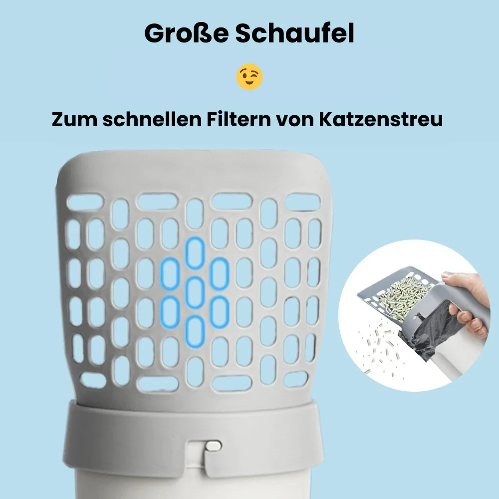 Mit dem ScoopEasy wird die tägliche Pflege deines Katzenklos mühelos und schnell. Dank des durchdachten Designs kannst du die Hinterlassenschaften deiner Katze mit nur einem Handgriff schaufeln und entsorgen.